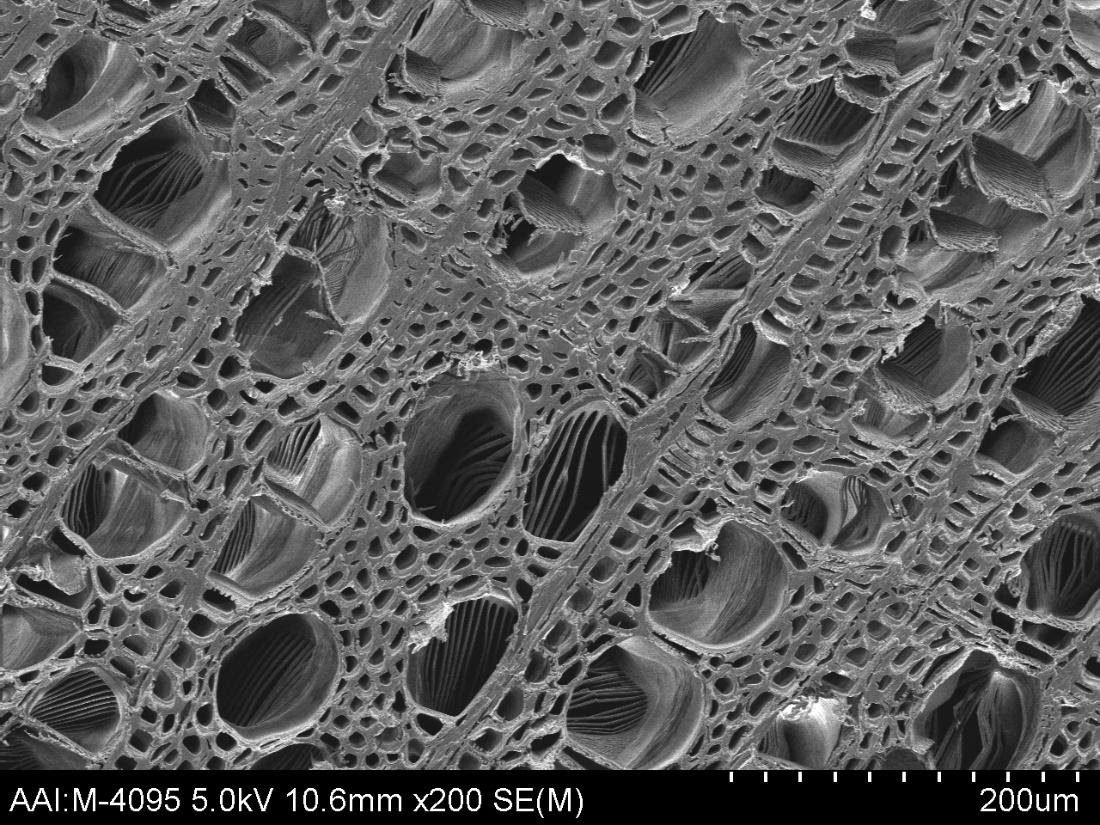 The Broad Ion Beam prepared microporous sample shown above is another of nature’s creations: wood!