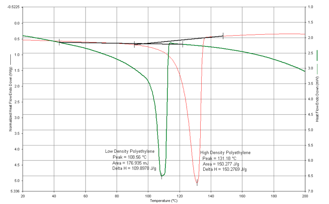 Plots showing differences in heat flow between a sample and reference, as a function of time or temperature, yield information on thermal transitions in a sample due to melting, crystallization, chemical reactions, glass transitions, and other exothermic (heat evolving) and endothermic (heat absorbing) transitions.